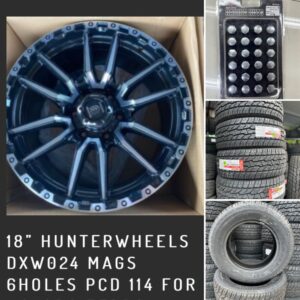18” Hunterwheels DXW024 Mags 6Holes pcd 114 w/265-60-r18 Maxxis AT771 Bnew