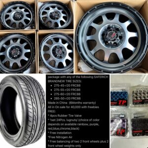 20” Toyota A16 Mags 6Holes pcd 139 w/285-50-r20 Saferich tire and lugnuts